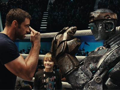 The time is the near-future. Hugh Jackman plays an irresponsible, washed-up prizefighter who ekes out a living as manager for boxing robots. When his ex-wife dies, he’s forced to spend a summer looking after his 11-year-old son—a boy he’s never really known (played by newcomer Dakota Goyo) who just happens to be a savvy superfan of robot boxers. It’s the kid who has faith in a “junk pile” Jackman is ready to write off. With some t.l.c. and Jackman’s boxing experience, the discarded machine takes them to the Big Time, and helps cement the damaged relationship between father and son.