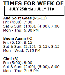 AND SO IT GOES (PG13) Adult Comedy 1 hr 34 min (not including 8 to 12 min of previews)
