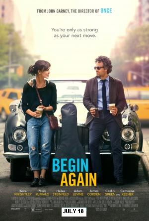 BEGIN AGAIN (R) Drama/Music/Comedy 1 hr 41 min (not including 8 to 12 min of previews)